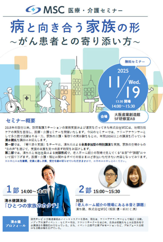 在宅医療・介護で地域を支えてきた株式会社MSC(本社:大阪市)は、創業10周年を迎え、地域包括ケアの実現を目指して医療・介護セミナーを2025年11月19日(水)に開催いたします。